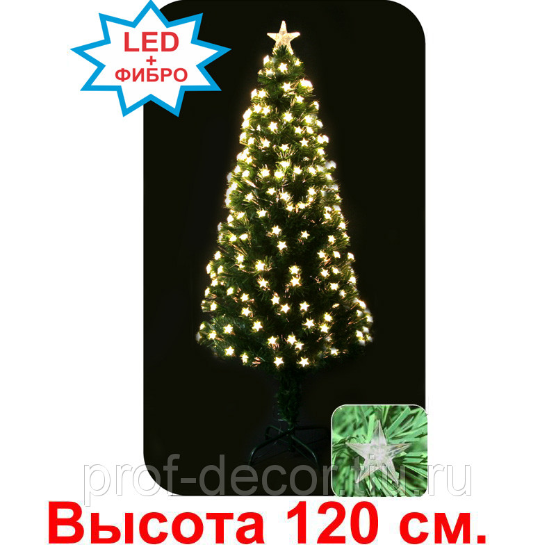 Ель светодиодная фиброоптическая "Звездная". Прозрачные "звездочки" со светодиодами тепло-белого цвета. 8-ми режимный контроллер.