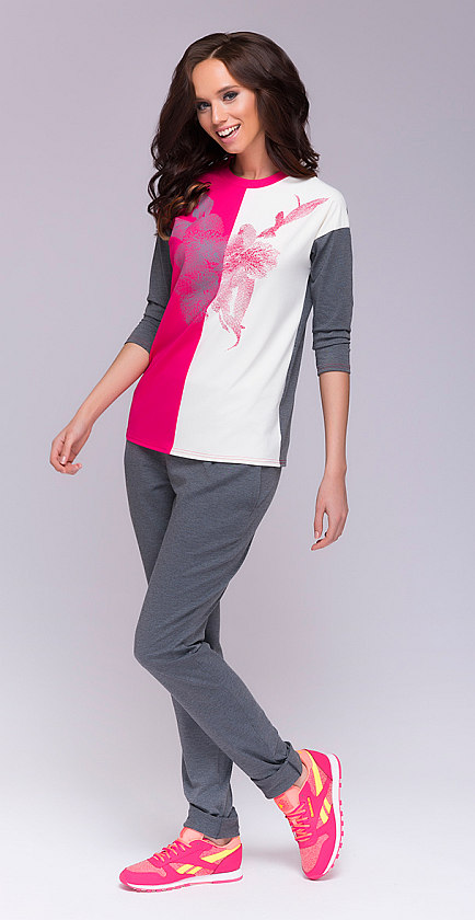 Топ трехцветный комбинированный со спущенным плечом, рукав три четверти, горловина округлой формы, на полочке