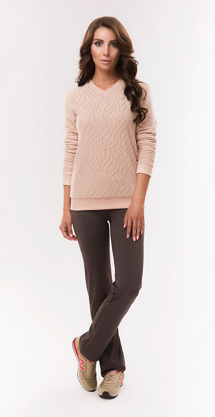 Свитшот с V-образным вырезом горловины с длинным рукавом, полочка из флиса с узором .