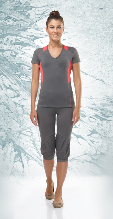 Топ двухцветный комбинированный с V-образным вырезом горловины, отделка из полотна микромерил.